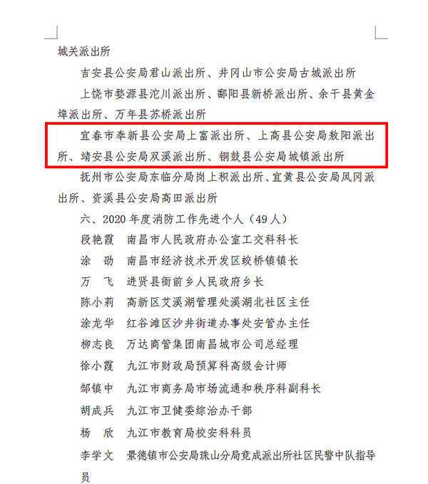 2020年度消防工作先進(jìn)公安派出所